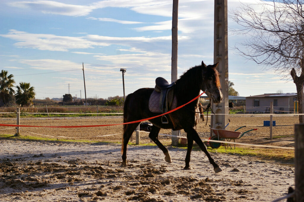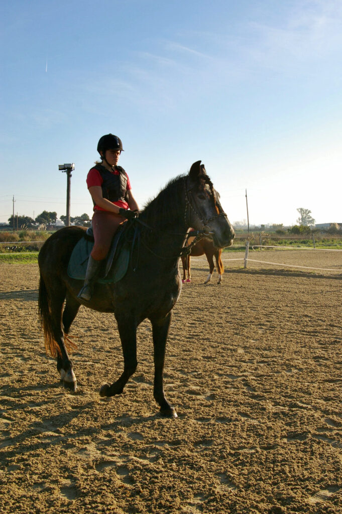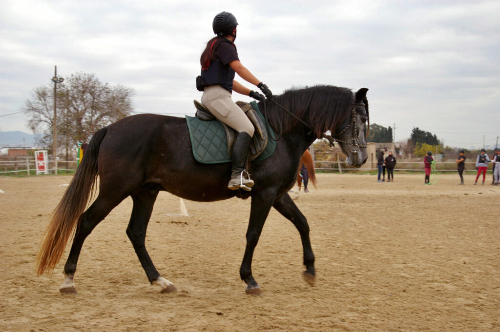 El cavall presenta un nivell de doma elevat dins del treball bàsic i mitjà, tenint en compte que es tracta d’un poltre i que, per tant, el seu comportament i maduresa són propis de la seva edat. Realitza figures com cercles i serpentines amb facilitat, mantenint un contacte correcte i estable amb la mà del genet. Morfològicament està ben adaptat al tipus de treball que es busca en la doma clàssica, amb una estructura corporal que afavoreix l’equilibri, la impulsió i la fluïdesa del moviment. Mostra un moviment ampli i expressiu, amb bona qualitat en el trot i un galop equilibrat. És un cavall fàcil de muntar, adequat per a genets amateurs gràcies al seu caràcter col·laborador i al seu bon contacte. En general, respon bé a les ajudes i no presenta resistències significatives en el treball habitual.