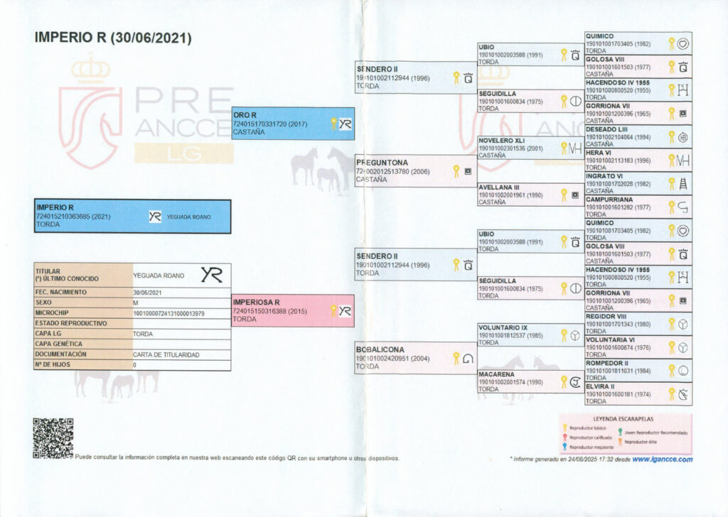 Magnífic exemplar de Pura Raça Espanyola, perfectament domat als tres aires i apte per poder iniciar-se a qualsevol disciplina hípica esportiva, també és un magnífic cavall per sortir d’excursió, sol o acompanyat d’altres cavalls. Accepta qualsevol posició dins del grup, és sociable, amistós i curiós.