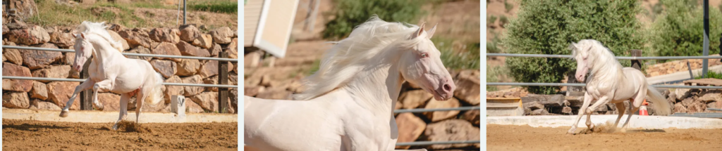 En alguns casos es fa servir el terme “albina” de manera col·loquial per referir-se a capes molt clares com el cremello, el perlino, el xampany o alguns blancs molt clars. Tot i això, genèticament l’albinisme pur (com en altres espècies) no existeix pròpiament en cavalls: aquestes capes clares acostumen a deure’s a gens de dilució o a altres mecanismes genètics que redueixen la pigmentació, però no eliminen completament el pigment com passaria en un albí real.